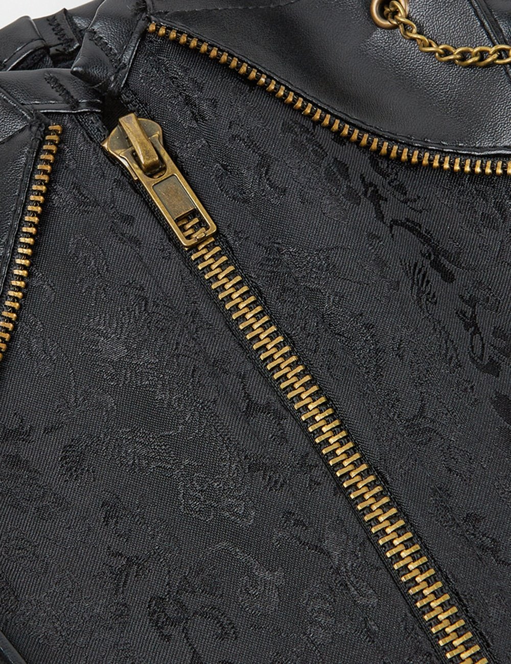 Advantages and Selling Points:1. Faux leather + printed fabric, breathable and comfortable;2. Paired with metal chains, rivets, and metal rings, punk trend;3. Center front zipper design, smooth and textured; center back lace design, adjustable bust;4. Equipped with 14 soft bones, providing support during exercise, safer for spinal protection;5. Halter style, hot and sexy;Standard Product Name: Available in black and coffee colors, faux leather + printed fabric, paired with metal chains, rivets, and metal rings, center front zipper design, center back lace design, adjustable bust, adjustable halter, 14 soft bones, bust pad, size S-7XL, vintage trendy leather printed bodysuit.Main Keywords: faux leather, printed, metal chains, rivets, metal rings, zipper, lace, soft bones, bust pad.