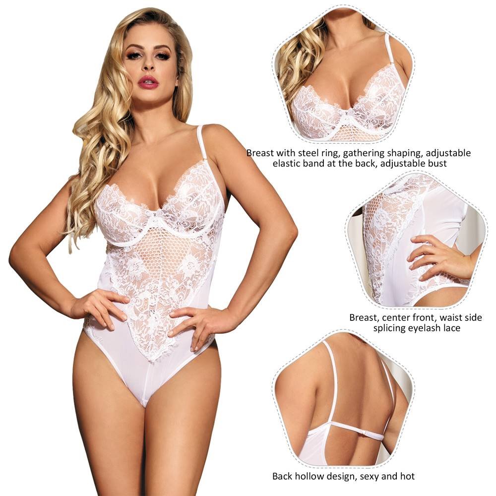 The R80408 Teddy from ohyeah is a stunning lingerie piece that is designed to make women feel confident and sexy. It has several features that set it apart from other lingerie pieces.One of the key features of the R80408 Teddy is the bra with steel rings that lift and shape the bust, providing a natural and flattering look. The back of the Teddy has adjustable elastic bands that ensure a comfortable and personalized fit, while the adjustable chest circumference allows for further customization.Another advantage of the R80408 Teddy is its use of eyelash lace in the chest, front center, and waist side, which adds a touch of sophistication and elegance to the design. The eyelash lace is seamlessly blended with other materials, creating a natural and high-end look that exudes class and refinement.The back of the Teddy features a captivating hollow design that is both sexy and seductive, showcasing the wearer?s curves in a subtle yet provocative way. The combination of sheer mesh and eyelash lace creates a beautiful contrast that is both stylish and alluring.The R80408 Teddy is available in black and white, making it versatile enough to be worn on various occasions. The lightweight mesh and eyelash lace make it perfect for warm weather, while the adjustable straps and steel rings provide support and comfort for all-day wear.Furthermore, the R80408 Teddy is available in S-5XL plus sizes, making it accessible to a broader range of women who want to feel confident and sexy. The Teddy is designed as a perfect combination of style and comfort, making it ideal for those looking to make a statement and show off their curves with confidence.In conclusion, the R80408 Teddy by ohyeah is a breathtaking piece of lingerie that is designed to make women feel confident and sexy. With its use of eyelash lace, sheer mesh, steel rings, adjustable straps, and hollow back design, this Teddy is an embodiment of style, comfort, and seduction. Whether you are looking for a provocative piece to wear on a special occasion or a comfortable piece to wear all day long, the R80408 Teddy is the perfect choice.