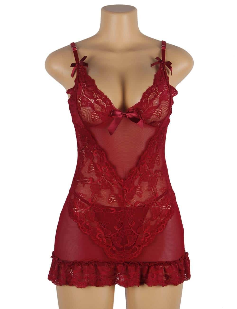 The luxurious sleepwear offered by ohyeah, the R70218-3P pajamas, are a perfect choice for anyone who wants to feel confident and sexy while they sleep. These pajamas are made from a combination of delicate lace and sheer mesh fabric, which flatters and accentuates the natural curves of the body. The V-shaped lace panel that runs from the bustline to the hemline adds sophistication and style to the overall design, making it a favorite among fashion-conscious women.The R70218-3P pajamas are available in three stunning colors – black, wine red, and purple – to suit any personal style. They are also available in sizes ranging from small to 7XL, making it a perfect choice for plus size women. The inclusion of a thong panty completes the look, making these pajamas the perfect choice for anyone who wants to feel sexy and comfortable at the same time.The mesh and lace detailing on the R70218-3P pajamas is exquisite, adding a touch of elegance and sophistication to this sleepwear option. The super-short, curve-hugging design is perfect for anyone who wants to feel confident and sexy, no matter their body type. The adjustable shoulder straps ensure that anyone can achieve the perfect fit.In addition to their stunning design, the R70218-3P pajamas are also incredibly comfortable to wear. The soft mesh and lace fabric feels gentle against the skin, making them the perfect choice for a good night?s sleep. Plus size women can also enjoy the comfort and style of these pajamas, as they are available in a range of sizes to suit all body types.Overall, the R70218-3P pajamas from ohyeah are a must-have addition to any lingerie collection. With their exquisite lace and mesh detailing, flattering super-short design, and adjustable shoulder straps, these pajamas are sure to become a favorite for anyone looking for a comfortable and stylish sleepwear option. So why wait? Order yours today and experience the ultimate in luxury and comfort!