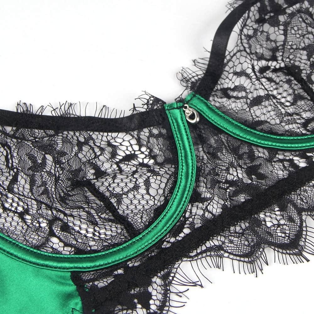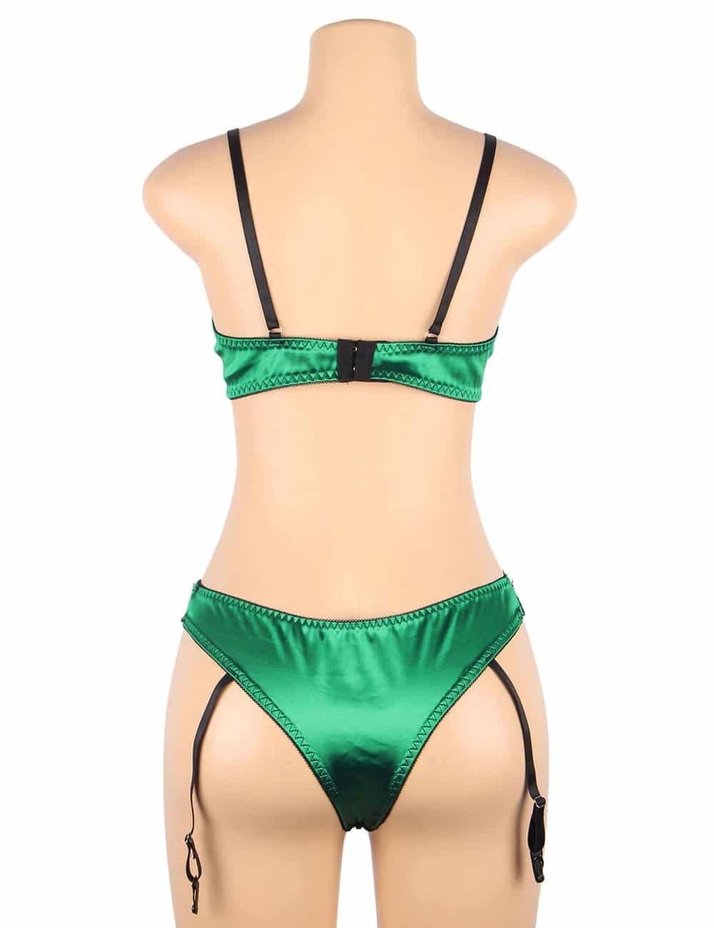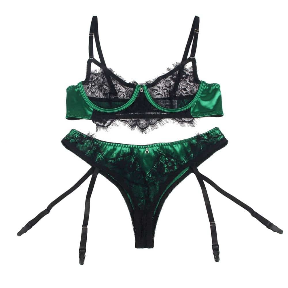 Ohyeah Company has introduced a new bra set product called R81031 that is designed to offer women a luxurious and sophisticated lingerie option. This bra set has several unique features that make it stand out from other lingerie products available in the market.One of the key selling points of this bra set is the use of high-quality materials such as elastic spandex and delicate eyelash lace. These materials give the lingerie a premium feel and a sophisticated look that women will appreciate. The lace detailing on the bra and panty adds a touch of femininity and sensuality to the overall design.The bra is designed with a steel wire ring that helps to lift and shape the breasts, providing a flattering silhouette. The back of the bra features a hook and eye closure that allows for easy adjustment of the bra?s fit to ensure optimal comfort and support.Another unique feature of this bra set is the inclusion of four elastic garter straps that prevent stockings from slipping down, ensuring that women can wear their lingerie with confidence and comfort.This bra set is available in a beautiful green color, adding a touch of elegance and sophistication to any lingerie collection. The adjustable shoulder straps and wide range of sizes (S-5XL) ensure that this bra set can be customized to fit any body type.Overall, the key selling points of this bra set include its high-quality materials, steel wire ring, adjustable back closure, and elastic garter straps. These features combine to create a lingerie set that is both elegant and seductive, making it a great choice for any woman who wants to feel confident and beautiful in her own skin. The lace detailing on the bra and panty adds a touch of femininity and sensuality to the overall design, making it a sexy women?s lingerie option that is perfect for any special occasion or just for a fun night in. The bra set lace lingerie is a two-piece set that women will love, providing both comfort and style in one sophisticated package.