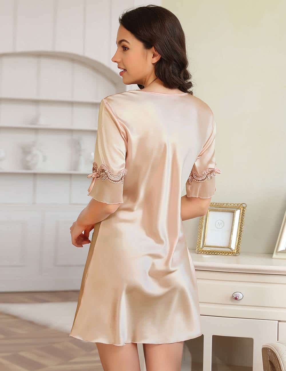 Be the first to review “Fashionable Nightdress Silk Embroidery Casual Sleepwear”