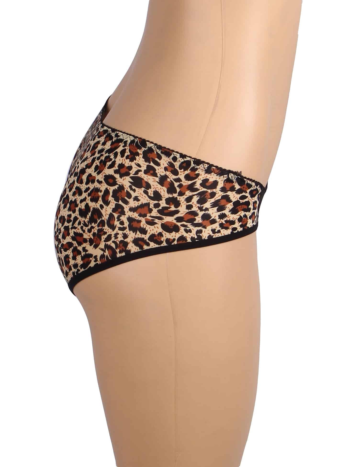 Advantages and Selling Points:1. Ice silk fabric, leopard print, personalized and wild;2. Front lace, stylish and beautiful;3. Cotton crotch pad, sweat-absorbing and breathable.Standard product name: Leopard print, ice silk fabric, front lace, cotton crotch pad, size M, women`s sexy leopard print ice silk pantiesMain keywords: leopard print, ice silk, lace, cotton crotch pad