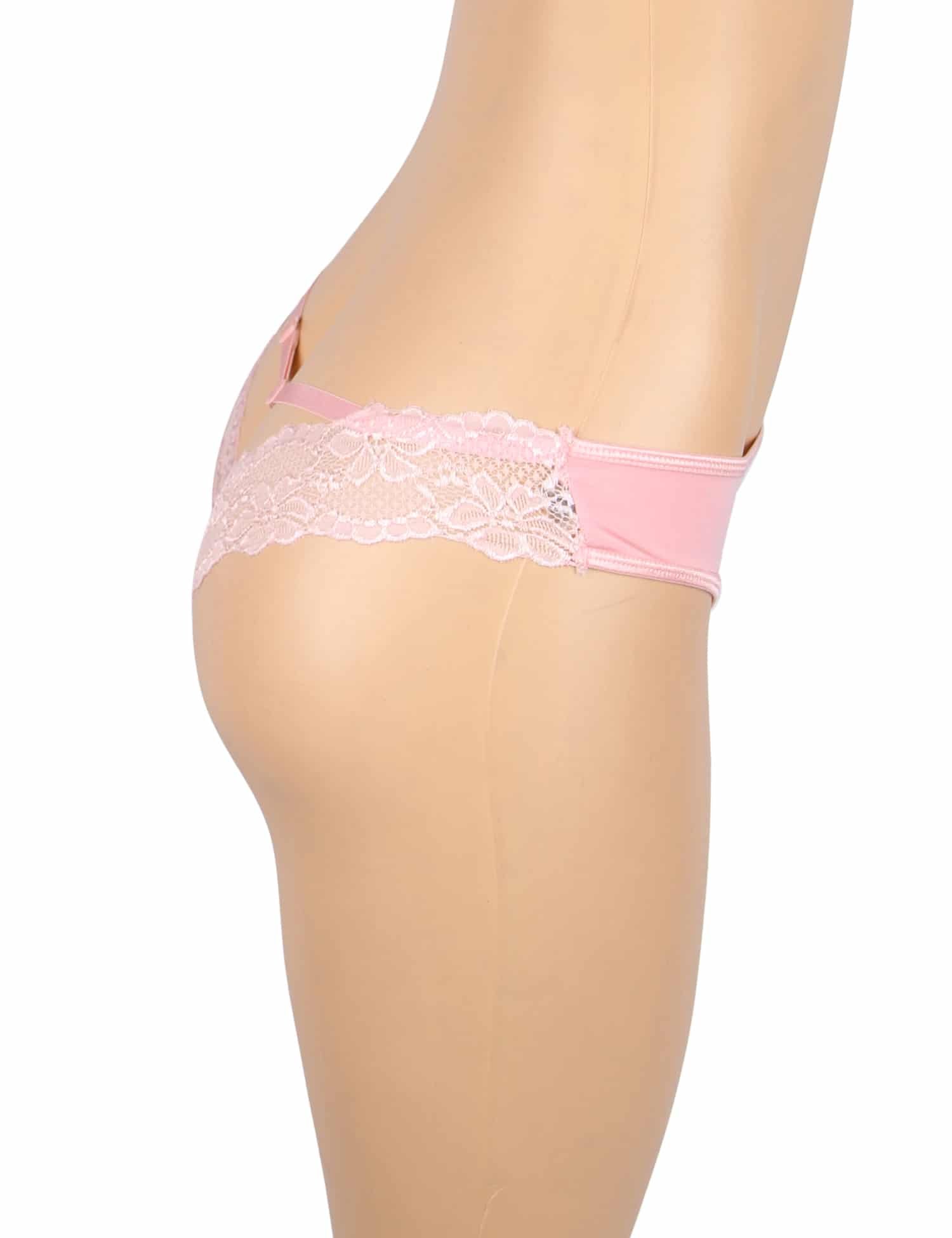 Advantages and selling points:1. Main fabric milk silk, soft and comfortable;2. The back features lace trim, combined with an adjustable nylon elastic band to form a hollow design, spicy and sexy;3. Cotton lining, breathable and moisture-wicking.Standard product name: available in black, white, pink, and nude colors, milk silk, lace trim + adjustable nylon elastic band forming a hollow design, with cotton lining, sizes M-5XL plus size, sexy lace underwear.Main keywords: milk silk, lace trim, hollow design, cotton lining.