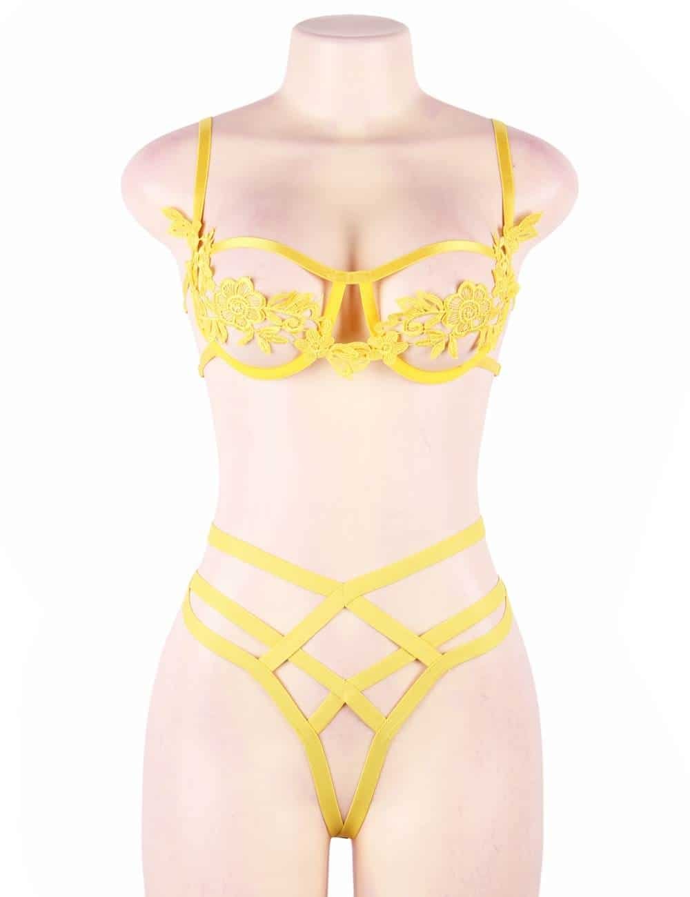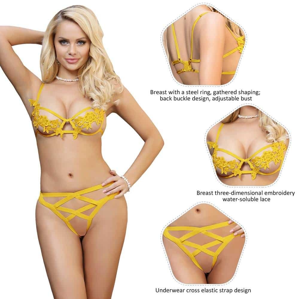 The Perfect Combination of Comfort and Style with the R80854 Bra SetIf you want a lingerie set that?s both stylish and comfortable, then the R80854 Bra Set from ohyeah is the best option for you. This product has several exceptional features that make it stand out from other lingerie sets available in the market.One of the most significant selling points of the R80854 Bra Set is its wireframe band, which offers excellent support to your breasts. The steel wireframe is both durable and flexible, allowing it to adapt to your body shape for a perfect fit. The bra also has a back closure, which enables you to adjust it according to your comfort level. This feature ensures that you feel comfortable all day long, no matter what you are doing.Another unique feature of the R80854 Bra Set is the floral embroidery made of water-soluble material. The flowers are embroidered on the bra cups, adding a touch of sophistication and elegance to the design of the set. The flowers make the bra an ideal choice for special events or romantic evenings.The cross-elastic band design of the panty is another outstanding feature that sets the R80854 Bra Set apart from its competitors. The criss-cross design ensures that the panties stay in place while providing a comfortable fit. The panties are adjustable, so you can adjust them to your preferred level of tightness. This feature ensures that you feel confident and comfortable, no matter when you wear the lingerie.The R80854 Bra Set comes in six different colors, including Red, White, Black, Blue, Yellow, and Pink, making it an adaptable option for any occasion. The set is available in two sizes (M and XL), making it easier for you to find the perfect size.In conclusion, the R80854 Bra Set from ohyeah is a lingerie set that combines style and comfort. With its wireframe band, floral embroidery, back closure, and cross-elastic band design, it is a product that elevates your lingerie game. Therefore, if you?re looking for a lingerie set that combines elegance, comfort, and sex appeal, the R80854 Bra Set is the perfect option for you.