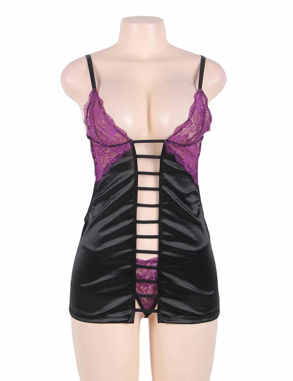 Be the first to review “Purple Lace Cups Satin Plus Size Chemise”