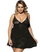 Be the first to review “Sexy Black Transparent V Neck Lace Plus Size Short Nightdress”