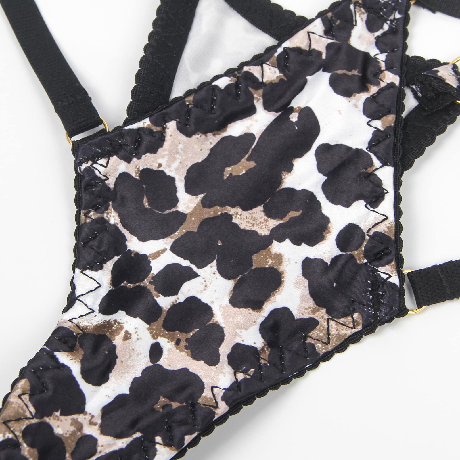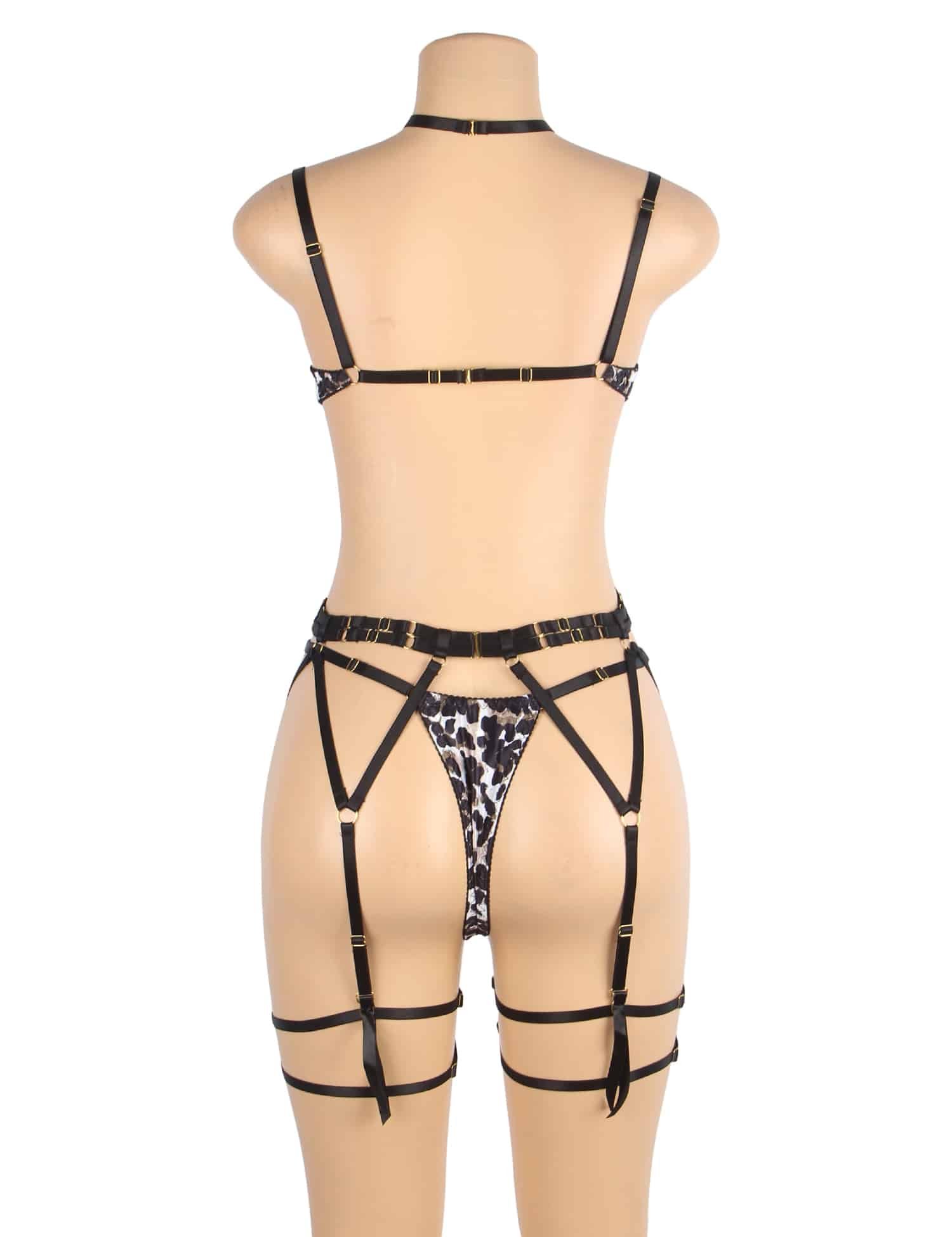 Advantages:1. Satin-like leopard print fabric, bright colors; 2. Underwire in the chest, adjustable elastic at the back with a 9-hook design, adjustable bust;3. Multiple elastic straps with metal rings on the chest and garter, for bondage fun;4. Comes with removable adjustable leg straps and neck strap, can be paired freely;Standard product name: leopard print, satin-like printed fabric, underwired chest, adjustable elastic at the back with a 9-hook design, adjustable bust, multiple elastic straps with metal rings on the chest and garter, comes with removable adjustable leg straps and neck strap, adjustable shoulder straps, M-5XL sexy leopard print bra set;Main keywords: leopard print, satin-like, underwire, 9-hook, elastic, metal ring, leg strap, neck strap.