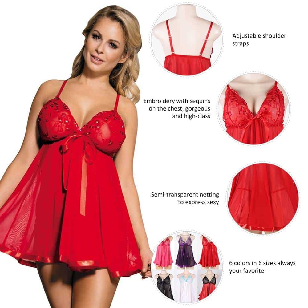 Introducing the latest addition to the ohyeah company?s lingerie collection, the E20736P. This babydoll lingerie is designed specifically for plus-size women and is a true embodiment of seduction and glamour. The lingerie features adjustable shoulder straps, intricate embroidery with shimmering sequins, and semi-transparent mesh material.One of the standout features of the E20736P is its adjustable shoulder straps. This allows women of different shapes and sizes to wear the lingerie comfortably and confidently. With its smooth adjustability, women can customize the fit of the lingerie to their liking and ensure that it accentuates their curves in all the right places.The E20736P also boasts an exquisite design that features delicate embroidery and shimmering sequins at the bust. This elegant embellishment adds a touch of sophistication and luxury to the lingerie, making it perfect for special occasions or intimate moments.The semi-transparent mesh material used in the E20736P further enhances its seductive appeal. The sheer fabric allows just enough skin to be visible, creating a tantalizing tease that is both alluring and mysterious.To cater to women of all tastes, the E20736P is available in six different colors and six different sizes, ranging from S to 6XL. The lingerie is also available with a matching thong, creating a complete set that is both stylish and functional.In conclusion, the E20736P babydoll lingerie is a must-have for every plus-size woman who wants to look and feel sexy and confident. With its adjustable shoulder straps, intricate embroidery with shimmering sequins, semi-transparent mesh material, and range of colors and sizes, the E20736P is the perfect combination of comfort, style, and seduction.