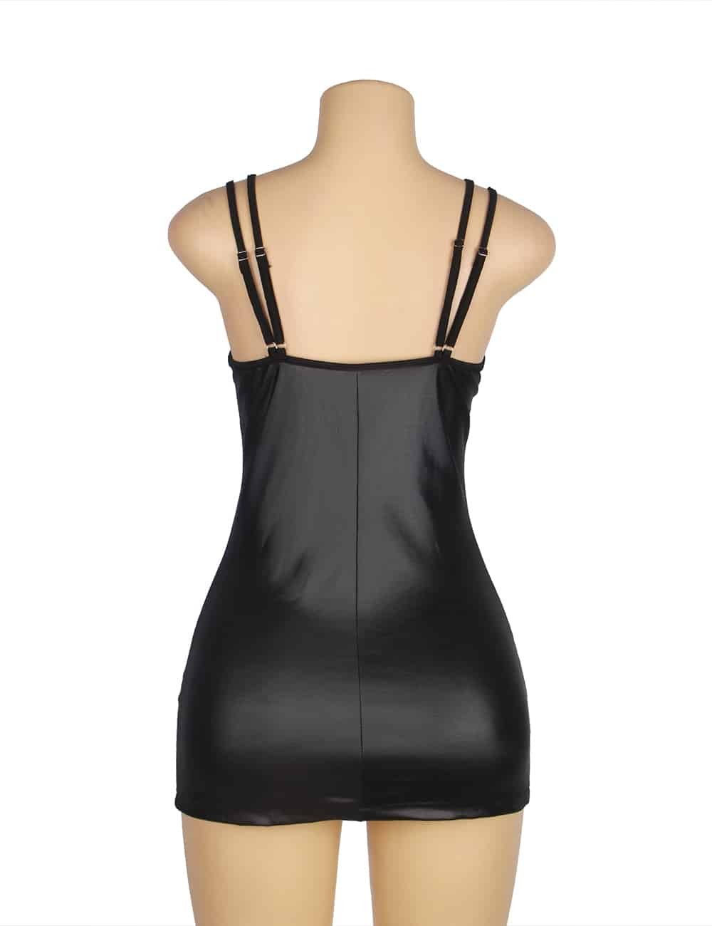 Introducing the R7858 Leather Dress from Ohyeah – a fashion statement that is perfect for women who want to showcase their bold sense of style and seductive curves. This dress is designed with unique features that make it a must-have item in any fashion-conscious woman?s wardrobe.One of the key features of the R7858 Leather Dress is its deep V-neck design. This neckline is perfect for highlighting your femininity and drawing attention to your d?colletage. Whether you?re dressing up for a special occasion or heading out for a night on the town, the deep V-neck design of this dress is sure to make you feel confident and sexy.Another great feature of the R7858 Leather Dress is its use of silver metal zippers on the straps and hemline. These zippers add a touch of glamour and sophistication to the dress, while also making it easy to put on and take off. This means you can spend less time getting ready and more time enjoying your evening out.The R7858 Leather Dress is also designed to be incredibly flattering and comfortable to wear. The super short hemline hugs your curves and accentuates your figure, while a matching thong provides added support and coverage. With sizes ranging from S to 5XL, this dress is perfect for women of all shapes and sizes.Finally, the R7858 Leather Dress is made from high-quality faux leather that looks and feels just like the real thing. This means you can enjoy all the benefits of leather without the high cost or ethical concerns. Plus, the faux leather material is durable and easy to care for, making it a great investment piece for your wardrobe.In conclusion, the R7858 Leather Dress from Ohyeah is a must-have item for any woman who wants to look and feel her best. With its stunning design features, flattering fit, and comfortable materials, this dress is sure to become a go-to item in your wardrobe. So why wait? Get yours today and start turning heads wherever you go! And don?t forget to check out Ohyeah?s plus size lingerie collection for even more stylish and seductive fashion options.